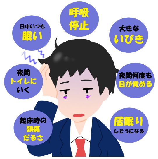 寝ている間に生じる無呼吸が、起きている間の活動に様々な影響を及ぼし、気付かないうちに日常生活に様々なリスクを及ぼしていると考えられています。