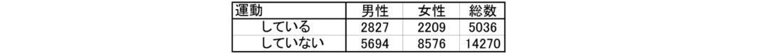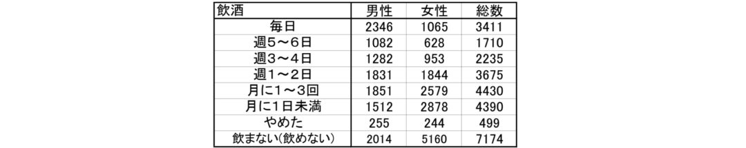 「お酒を飲む頻度はどれくらいですか?」という質問において、は下の表のような結果が出ています。