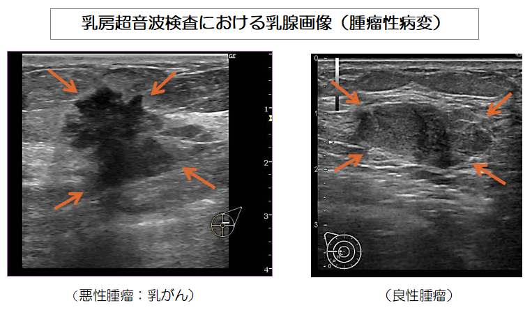 - 視触診では分からない小さな腫瘤や細かい石灰化を発見できる